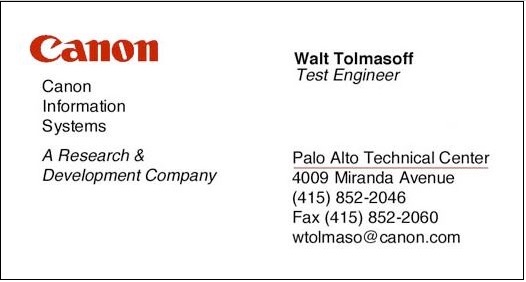 America. San Francisco, CA. TEST ENGINEER at Canon Information Systems, Palo Alto, California. Product Support Analyst at Symantec, Cupertino, California. ATTENTION